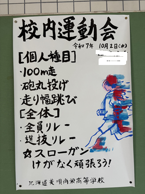 教科芸術で生活に生きる書を選択した生徒たちがポスターを書き上げ、校内2カ所に掲示されています。