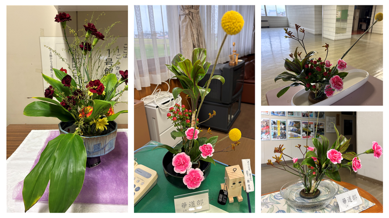 華道部の生徒が生けた作品を生徒玄関、職員玄関、職員室前、校長室に展示中です。
