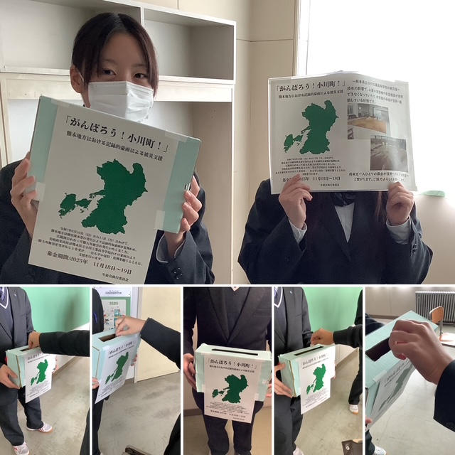 生徒会執行委員会は、8月10・11日の熊本地方の豪雨災害で被災した熊本県立小川工業高等学校を支援するために募金活動を行いました。本校にはメカトロエンジニア系列(工業)があるので、同じ工業を学ぶ仲間として全校規模での支援・応援をすることになりました。ともに「頑張ろう!小川町!」