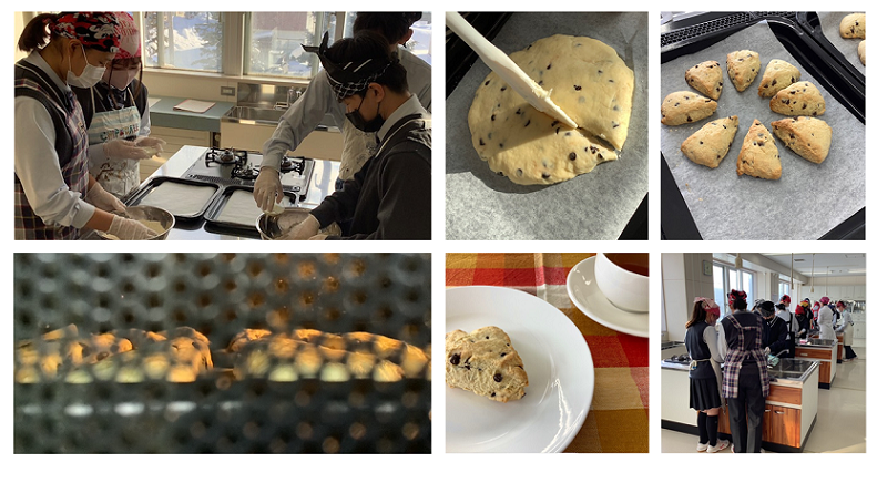 また、スコーンを通してイギリスのアフタヌーンティーに代表される食文化にも触れ、食事がもつ楽しさや、食卓を華やかにする工夫について考えるきっかけとなりました。初めての調理実習は、生徒たちにとって食への関心を高める貴重な学びの時間となりました。