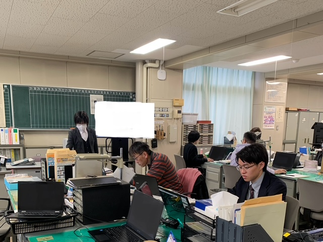 4月7日(火)、教職員による校内研修を行いました。今回は、前回(3月19日)に実施した「指導と評価の一体化に向けた学習評価の改善」の続きとして、「観点別評価」を進めるための共通のエクセルシートの使い方について、教務部長がプレゼンテーションを行いました。