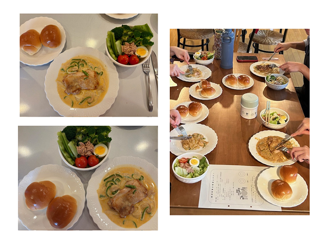 3年次「フードデザイン」の調理実習では、ハンガリーの伝統的な料理で、主に牛肉や鶏肉をトマトやパプリカと一緒に煮込んだ料理に取り組みました。鶏肉の調理法、ホワイトソースの作り方や西洋料理の特徴と食事作法を学びました。試食は、フードコーディネート室でナイフとフォークを使って、楽しく会食することができました。