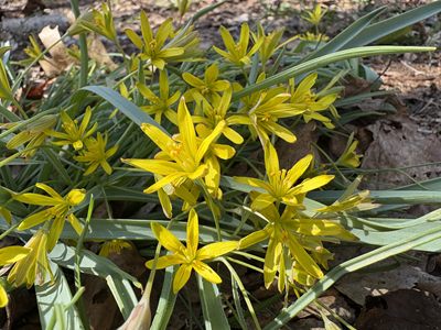 春一番に咲く花。キバナノアマナ。花言葉が素敵です。「運が向いてくる」「幸福が訪れる」