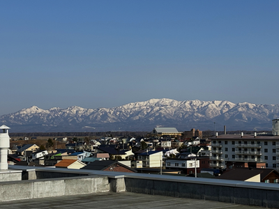 何度もこの風景を掲載して話をさせていただいております。私の自慢ですのでどうぞ御覧ください。今日は屋上から撮影しました。いつもより一段、二段高いポジションから撮っていますので、見えてくるものが違うと思います。1年前にもここに上がりました。私は各学校の屋上に着任したその日に上がっています。ただ風景を眺めたい、からではありません。